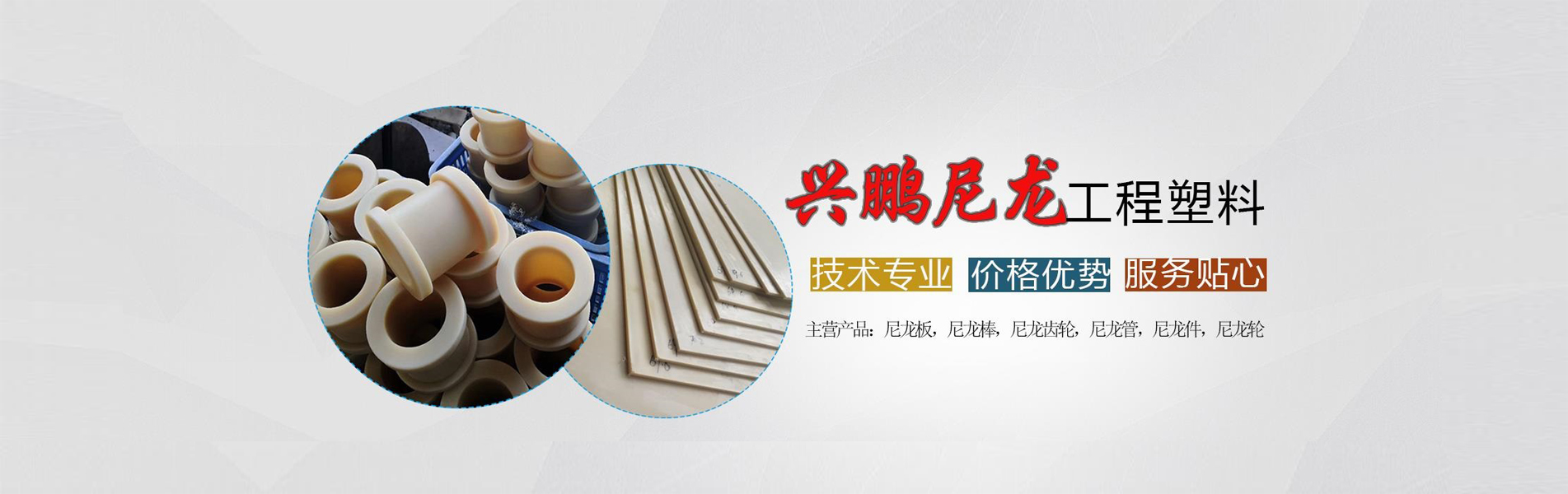 新河縣興鵬工程塑料有限公司        興鵬工程塑料主營尼龍工程塑料產品,也是一家多年來從事新型尼龍制品的研發、生產、銷售的實體廠家。公司位于新河縣邢秋口村東側,緊靠青島銀川高速公路和京廣鐵路,交通便利。        新河縣興鵬工程塑料有限公司是一家專業生產和加工MC尼龍工程塑料及其他產品的公司,擁有完整科學的質量管理體系。公司主要產品:MC尼龍板,擠出尼龍棒,塑料尼龍齒輪,尼龍管,尼龍件,尼龍輪等產品,可廣泛用于水泥,鋼鐵,冶煉,焦化,電力,化工,煤炭,食品,采礦,機械,油田,市政工程,海洋工程和其他行業:產品暢銷全國各地并進入國際市場。我們所生產的產品多年一直受到各界合作好友的高度評價,我們生產的產品以國內外的先進技術作為引領,技術和設備在同行業均是先進水平。并且我公司與相關的科研機構長期建立著穩定的合作關系。公司產品均采用先進的技術,先進的設備,和嚴格的檢測手段進行生產檢測。我們堅決給客戶提供更優的產品。        “以質量求生存,以信譽求發展”是我們堅定的信念和宗旨。我們愿與擁有先進技術和豐富施工經驗的新老客戶攜手共創美好未來。……